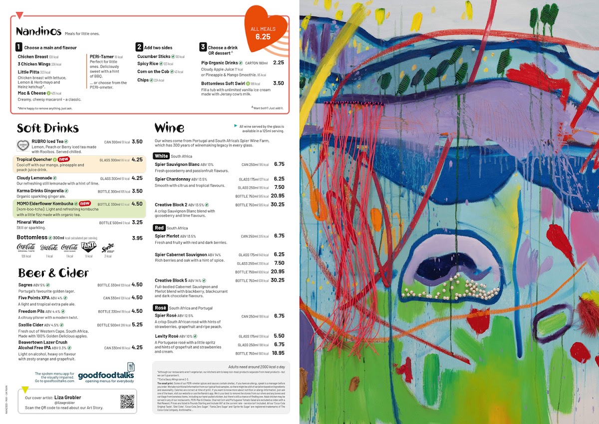 The menu is a delightful showcase of grilled goodness, with options ranging from succulent chicken pieces marinated to perfection to mouthwatering sides like garlic bread, mash potatoes, and haloumi cheese. Each dish embodies the spirited essence of Nando's, ensuring you enjoy the familiar, beloved flavors you crave.